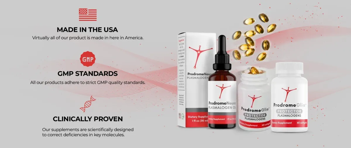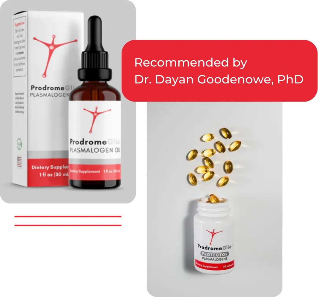 ProdromeGlia™ contains the plasmalogen building blocks for glial cells that make up brain white matter. Glia are cells that surround, support, and protect neurons. These plasmalogens commonly decrease with inflammation.